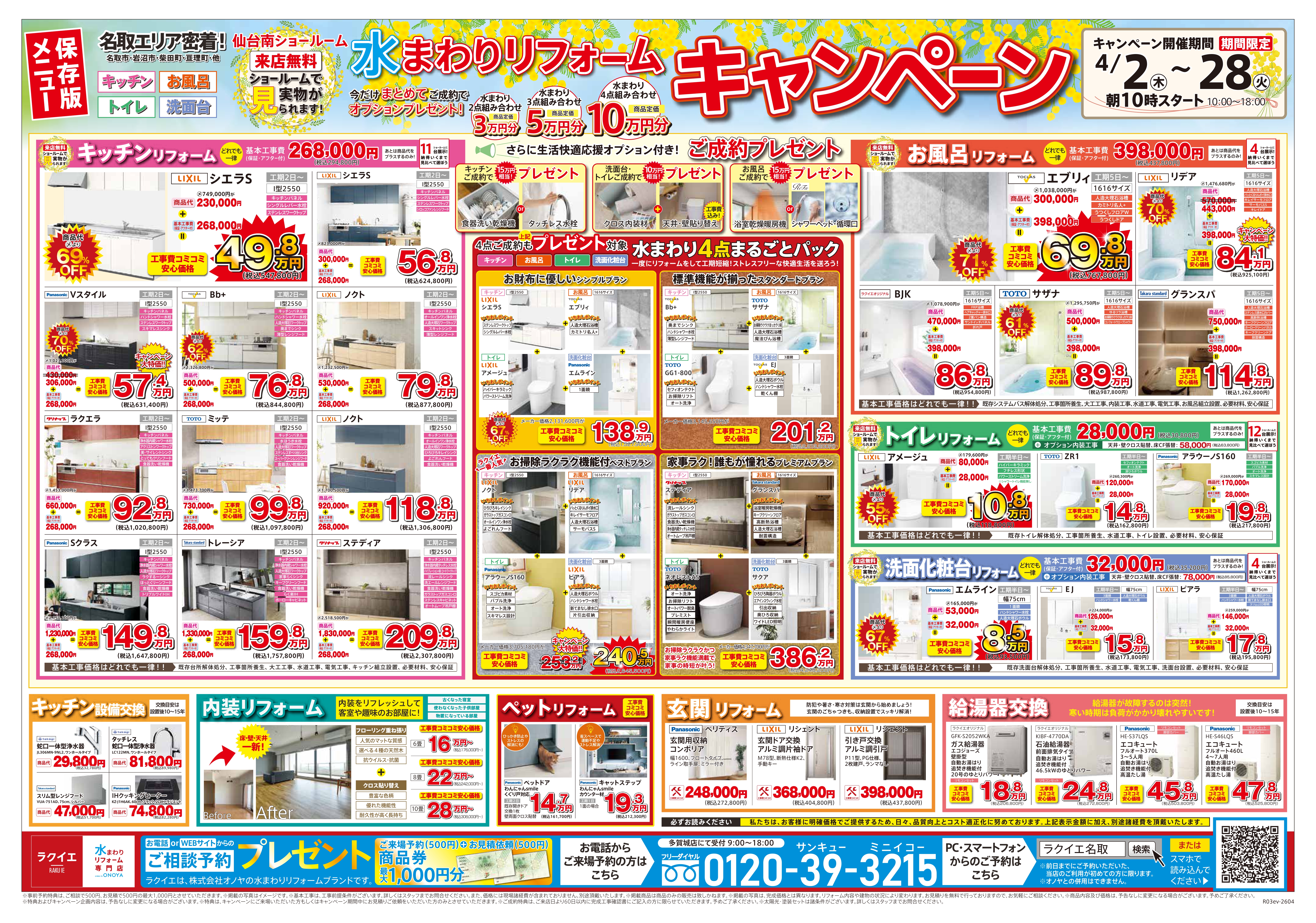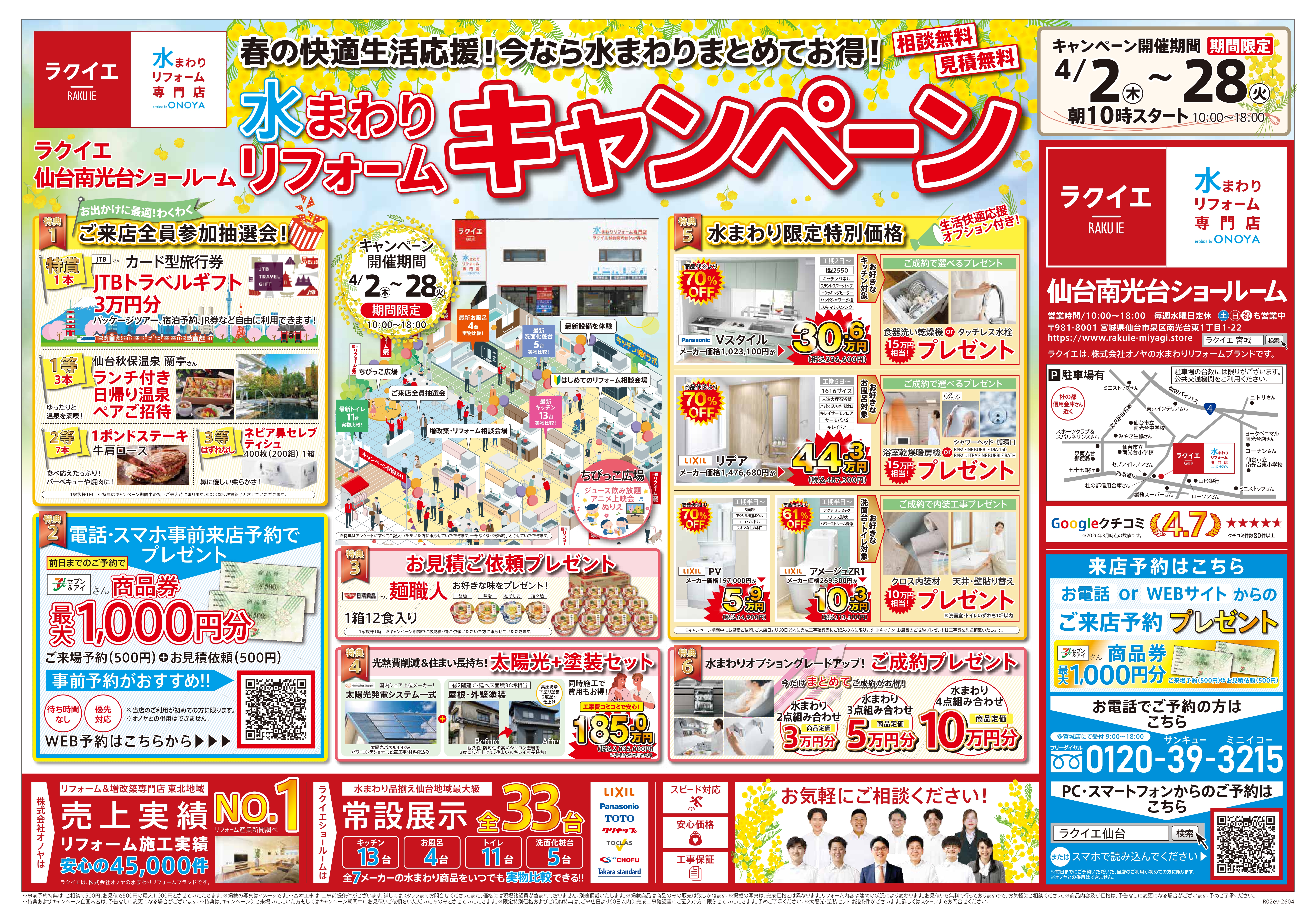 2026年4月水まわりリフォームキャンペーン in 仙台