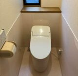 TOTOのGG3手洗い器無を設置致しました。以前のおトイレは便座脇にスイッチがあるタイプでしたので、今回のリフォームで壁面にスイッチが付き、操作や動作が楽になりました。また、経年によるカビや汚れがあった壁紙クロスですが、腰壁まではメラミン樹脂パネルにし、汚れも簡単に拭き取れるようになりました。トイレ交換と内装リフォームで、おトイレ自体だけでなくトイレの室内空間の使いやすさや、お掃除やお手入れも楽になったと思います。